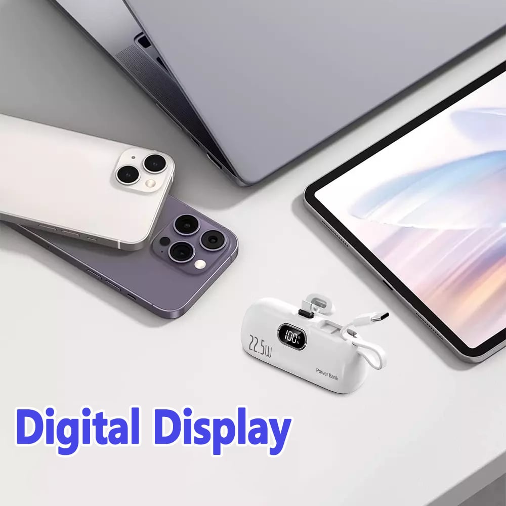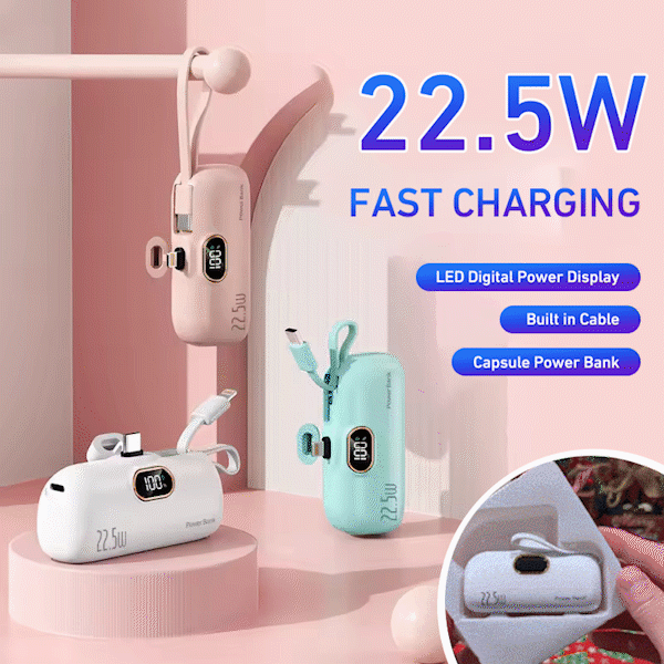 22.5W Mini Capsule Power Bank with USB-C & iPhone Ports